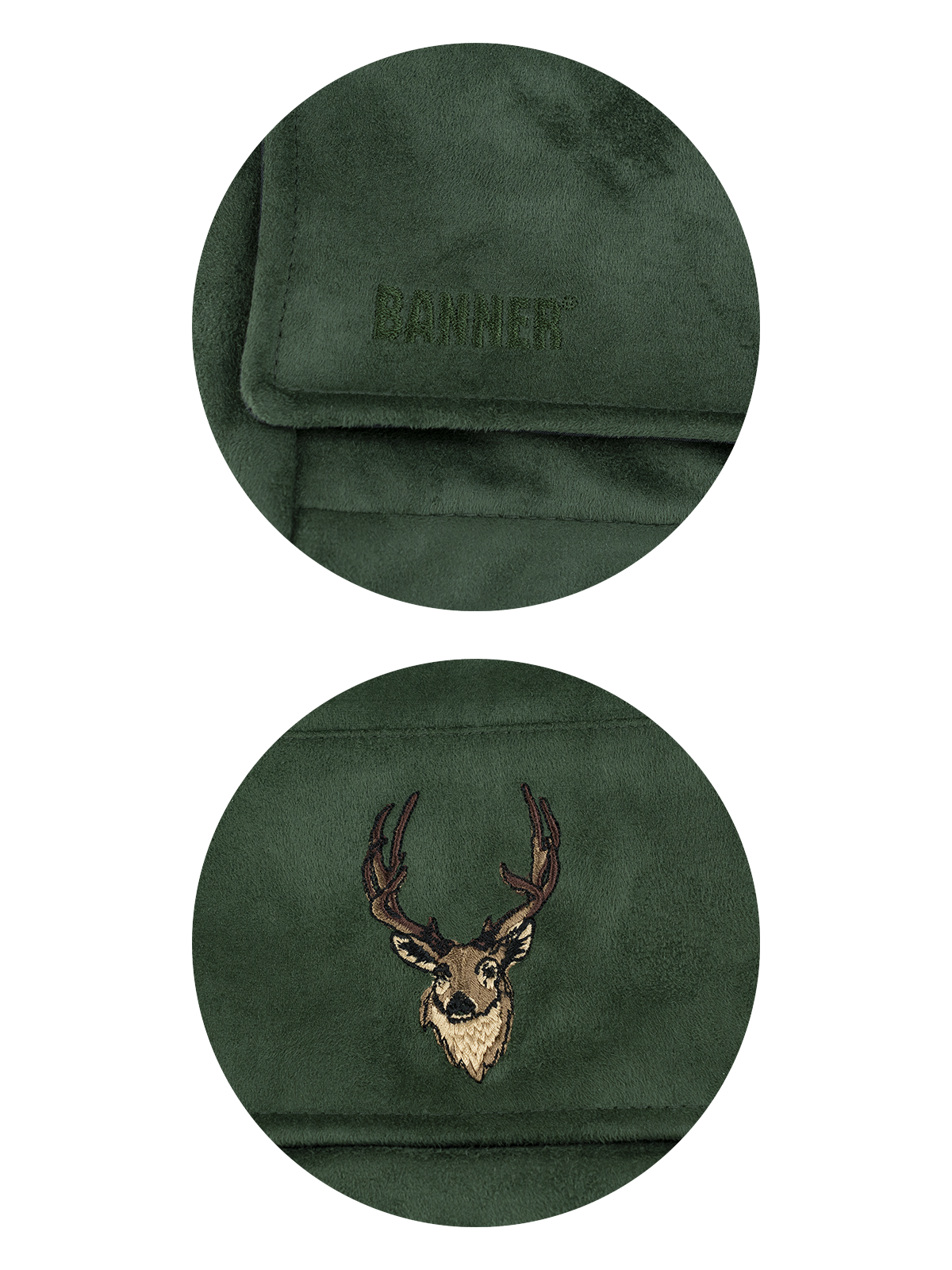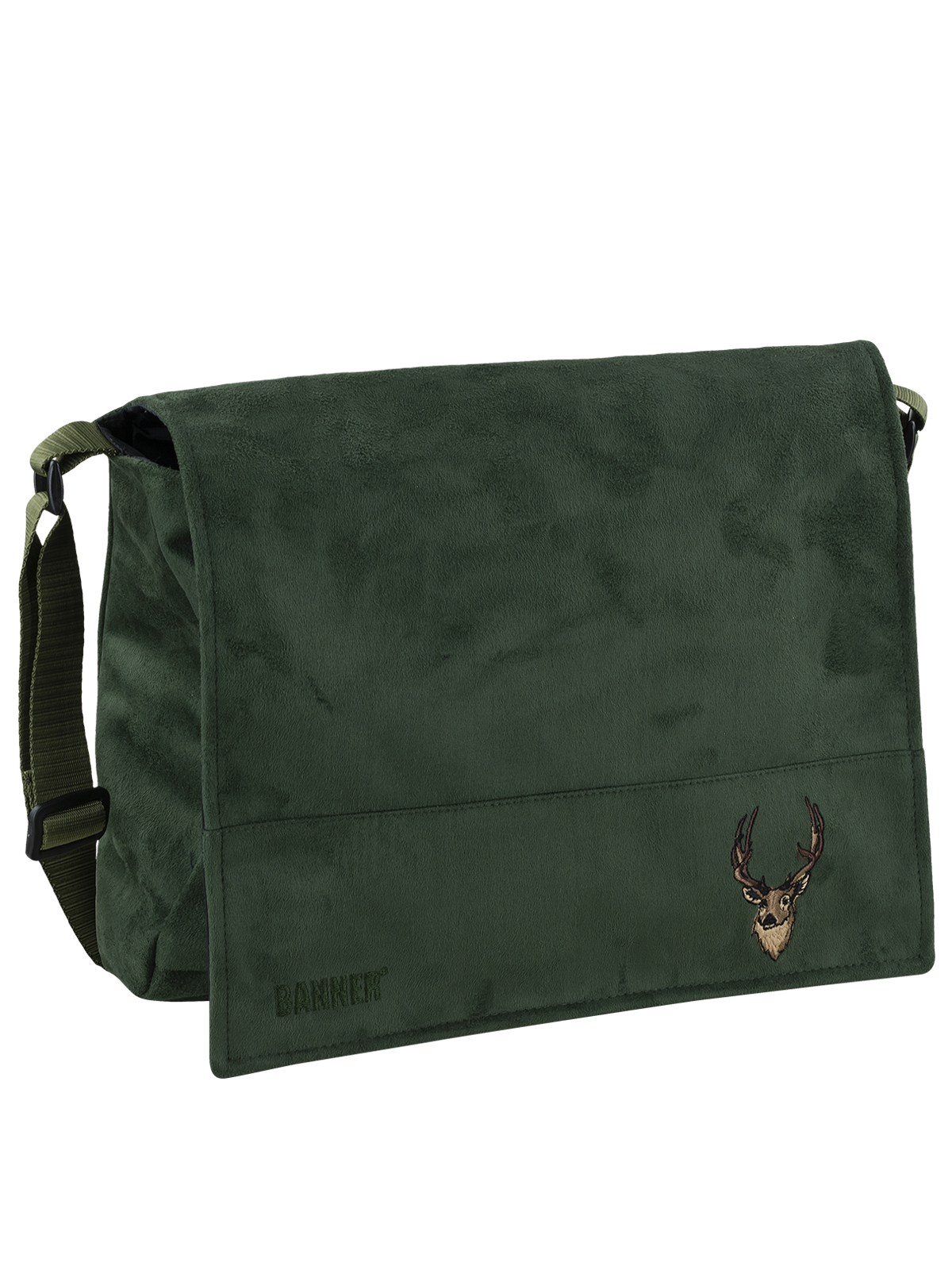 Taška přes rameno s výšivkou hlavy jelena. Vyrobena z látky s výrazně broušeným povrchem. Popruh přes rameno. 1 vnitřní kapsa a další 2 menší kapsy.